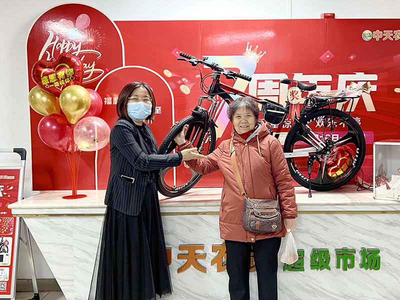同時為感謝廣大顧客七年以來對中天農(nóng)貿(mào)的支持與厚愛,市場在慶典當(dāng)天投放了千枚鮮雞蛋,免費領(lǐng),共慶生,傾情回饋七年的相伴,最后的重頭戲,是最令人期待的大抽獎環(huán)節(jié),本次慶典活動獎品除了微波爐、電烤箱、料理機、電熱鍋等小家電以外,還特別增設(shè)了特等獎——品牌變速山地車,面對豐厚的獎品,熱情的顧客們都已按捺不住激動的心情,迫不及待的想知道自己是不是幸運兒,隨著主持人念出幸運號碼,現(xiàn)場一片笑語歡聲,開獎結(jié)束后,農(nóng)商公司總經(jīng)理孫晶為中獎顧客頒獎并合影留念。