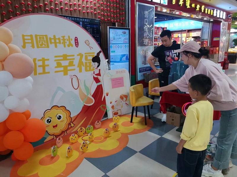 9月17日,一年一度的中秋佳節(jié)溫馨而至,為回饋長久以來顧客們對中天農貿的支持與厚愛,中天農貿在9月15日至9月17日節(jié)日期間舉辦了“開心圈月餅 歡樂共團圓”的活動,活動期間,全場消費達額66元的每一位顧客均可以在活動現場領取三支幸福圓圈,現場鋪滿象征著團圓的月餅道具,每一個道具都對應相應的節(jié)日禮品如砂鍋、調料瓶、盆、紙抽等等實用的小禮品,游戲規(guī)則就是套中你心儀的禮品,就可以現場拿走,即使顧客沒有套中也沒有關系,物業(yè)服務人員仍會給您補發(fā)一件貼心小禮物,保證每一位參與活動的顧客朋友們,都能得到一份中天農貿送出的禮品祝福。