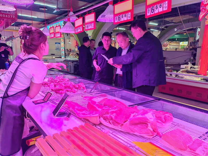 5月15日,省市場監管局領導一行深入中天農貿市場,開展食品安全專項檢查,全力守護群眾“菜籃子”安全,招商運營部經理孟祥松陪同檢查。