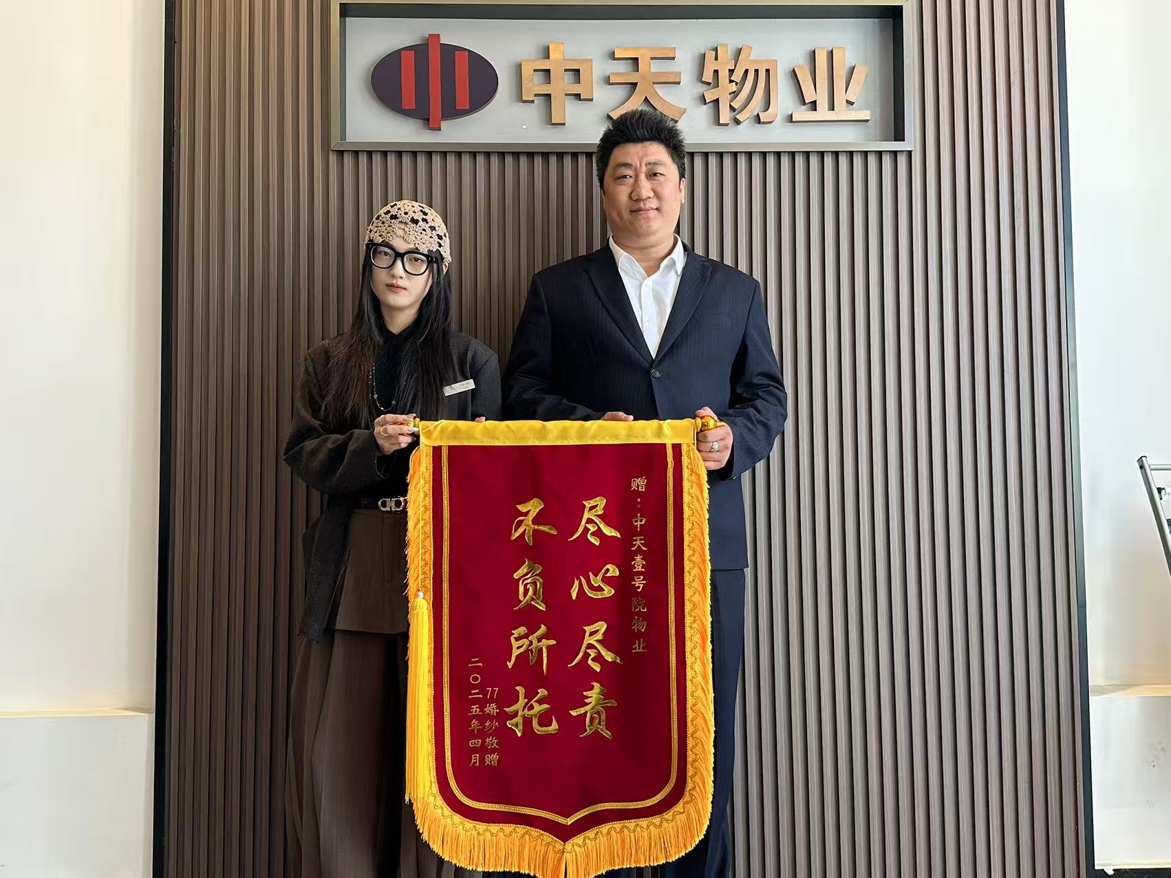 小小的鼓勵,大大的鞭策。一面錦旗,是業主對物業服務的認可,更是鞭策我們前行的動力。今后中天物業將帶著這份溫暖,繼續做您美好生活的“守護者”。讓服務有溫度,讓幸福觸手可及。